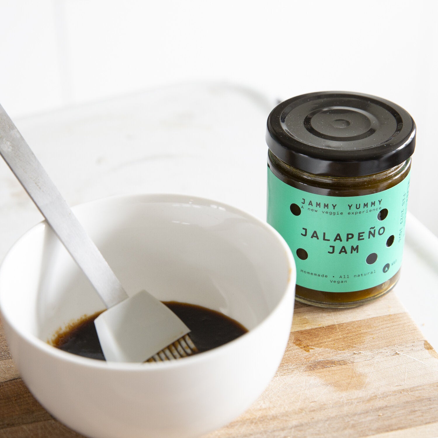 Remove steaks from packaging and generously salt each side. Return to refrigerator for at least 3 hours. To make glaze, combine Jalapeño Jam, Soy Sauce, and chili powder or cayenne into a bowl. Stir until well mixed.