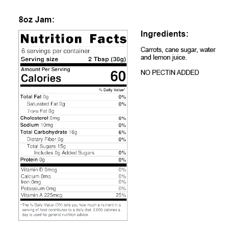 INGREDIENTS: Carrots, cane sugar, water and lemon juice.